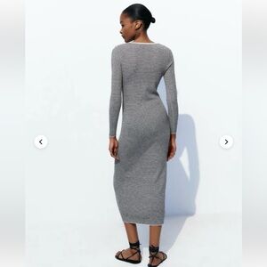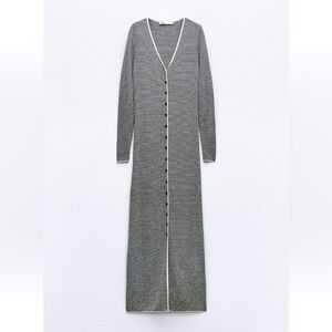 New ZARA V-neck Striped Midi Knit Dress With Contrast Buttons