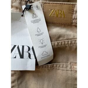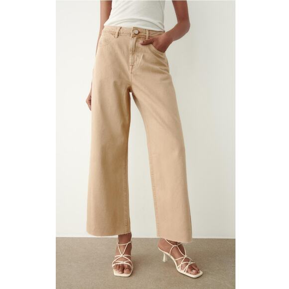 New ZARA Women's Camel High-Waist Wide Leg Cropped Jeans Size 8