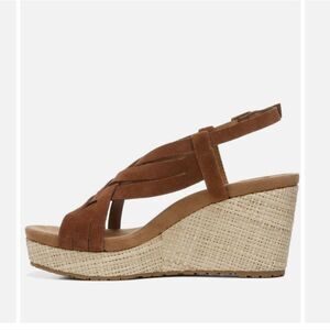 New ZODIAC PETRA SUEDE ANKLE STRAP WEDGE SANDALS brown leather suede chunky 10