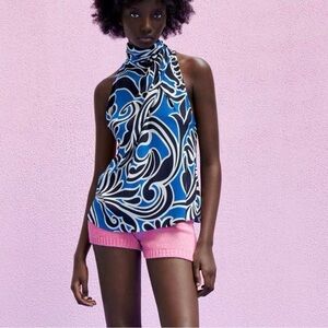 New Zara Abstract Print Draped Halter Top Sz Medium