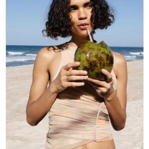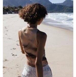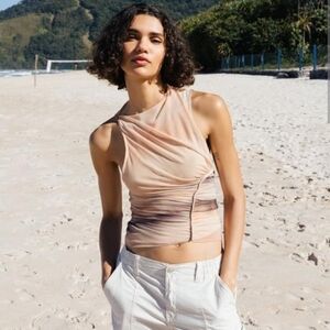 New With Tag Zara Asymmetrical Sleeveless Ruched Mesh Tulle Dyed Top/Blouse
