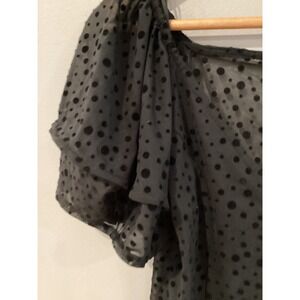 New Zara Black Polka Dot Sheer Ruffle Sleeve Bodysuit Top M