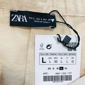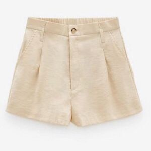 New! Zara Bohemian Pleated Extra High Waisted Bermuda Ivory Shorts