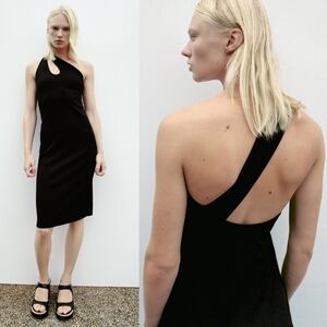 New Zara Cutout Bodycon Black Cocktail Midi Dress Blogger Favorite Size Small