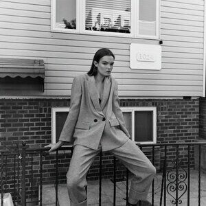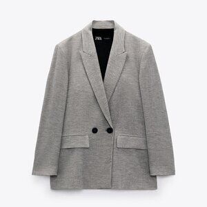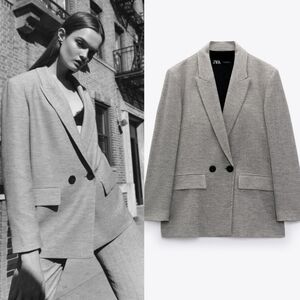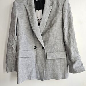 New Zara Double Breasted Textured Weaver Grey Blazer/Jacket Groufit NWT XS