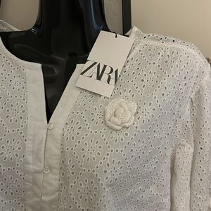 New Zara EMBROIDERY AND CROCHET BLOUSE Girls White 13/14