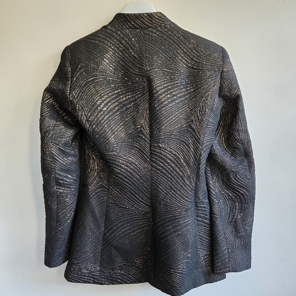 New Zara Festive Days Lapelless Jacquard Black/Gold Blazer Suit Jacket NWT Small