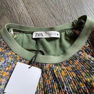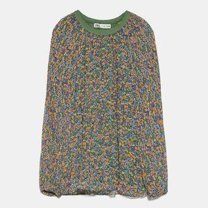 New Zara Floral Print Pleated Multicolor Blouse Size Small