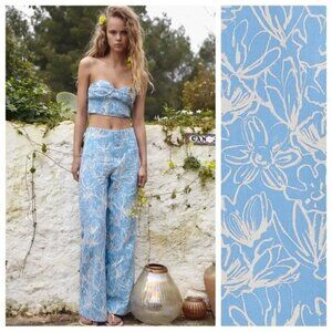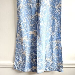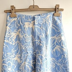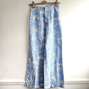 New Zara Full Length Floral Linen Blend High Waisted Blue/White Pants NWT Small