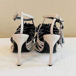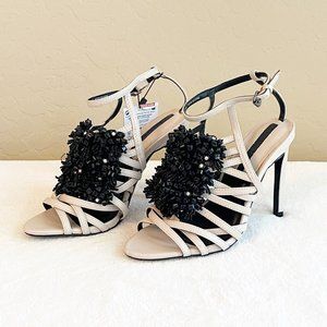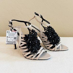 New Zara High Heels Sandals 6 Ecru Pink Black Beads Crystal Strappy Heels NWT