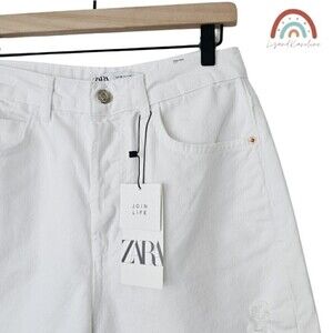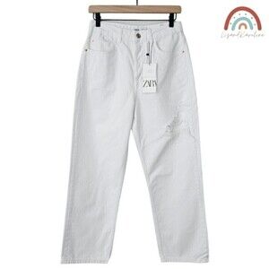 New! Zara High Rise Straight Leg Distressed Button Fly Rigid White Jeans