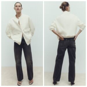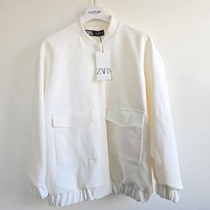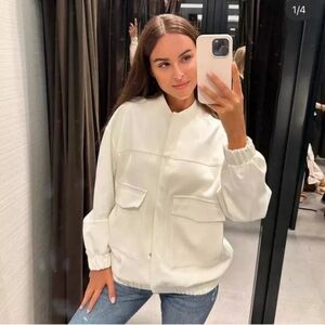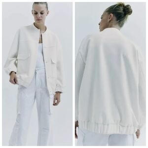 New Zara Longline Patch Pockets Oyster White Bomber Jacket Blogger Fav Small