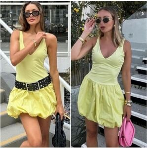 New Zara Mixed Ballon Yellow Mini Dress NWOT Size XS Blogger Influencer Favorite