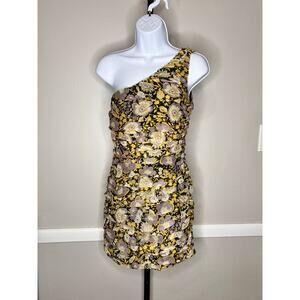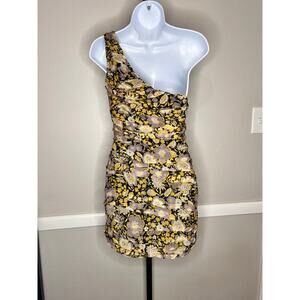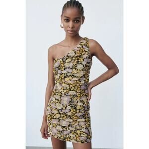 New Zara One-Shoulder Floral Ruched Mini Dress