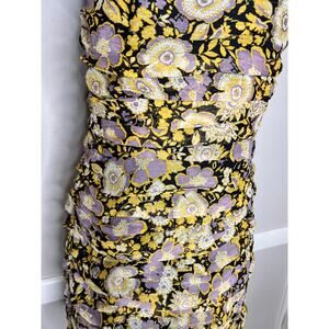 Brand new with tags! This stunning Zara one-shoulder mini dress is a showstopper. Featuring a vibrant yellow, lavender, and black floral print, it’s designed with flattering ruched details and a curve-hugging silhouette. The asymmetrical neckline adds a trendy, modern touch that’s perfect for nights out, parties, or summer events.