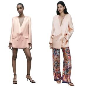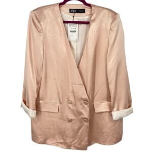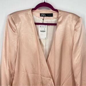 New Zara Oversized Lapel-less Salmon Pink Satin Blazer Size XL
