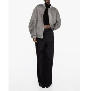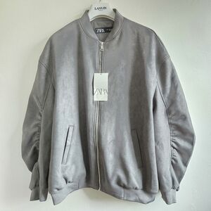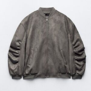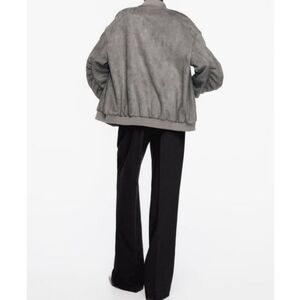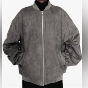 New Zara Oversized Suede Gray Bomber Jacket NWT Medium