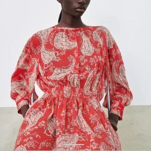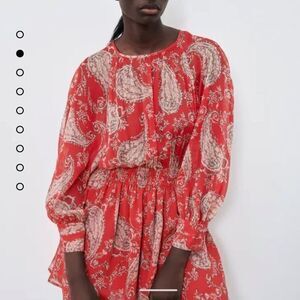 New Zara PAISLEY PRINTED SHORT DRESS RED WOMENS SIZE M