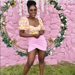 New Zara Poplin Floral Embroidery Barbie Pink Geo Print Bodysuit/Top NWT Small