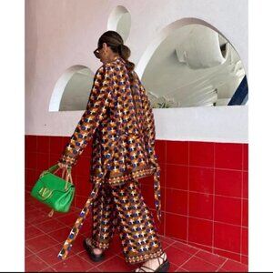 New Zara Printed Double Breasted Tie Belt Brown Blazer Blogger Favorite NWT XS