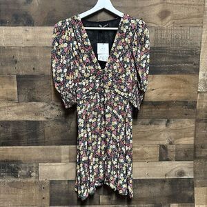 New Zara Printed Shoulder Pad Dress Size Small floral Multicolor missing button