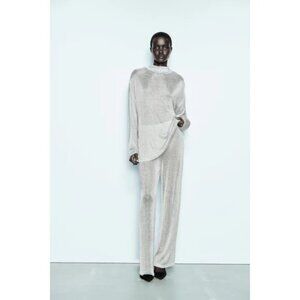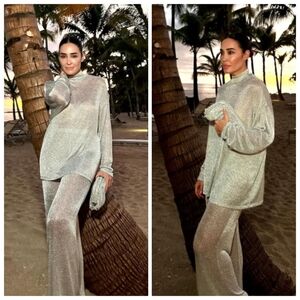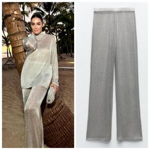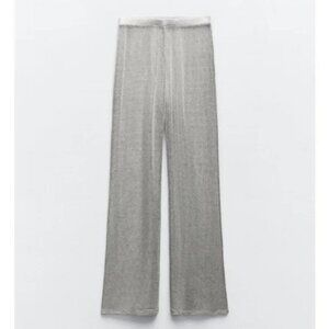 New Zara Pull-On High Waisted Mesh Metallic Fishnet Silver Swim Cover-Up Pants