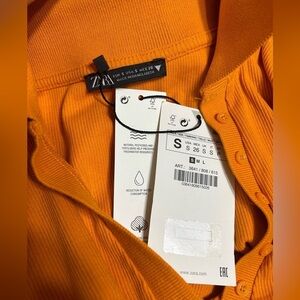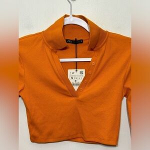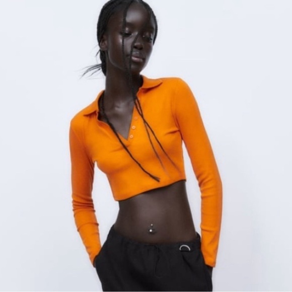 New! Zara Ribbed Long Sleeve Cropped Polo Shirt