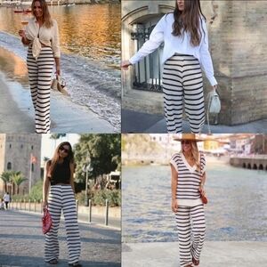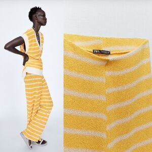 New Zara Rustic Striped Knit High Waist Blogger Favorite Resortwear Pants Large
