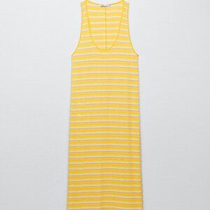 New Zara Striped Yellow Sleeveless Racerback Tank Maxi Dress NWT