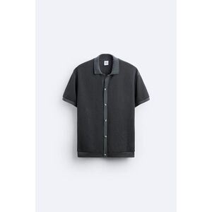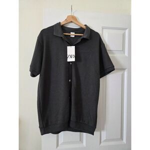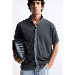 New Zara Structured Shirt S 4087/330 Grey casual knit polo sweater short sleeve
