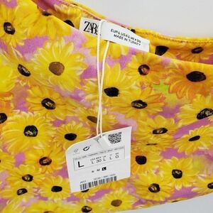 New Zara Womens One Shoulder Crop Top Floral Yellow Daisy Print Stretchy Size Large