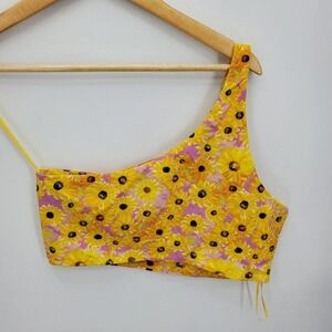 New Zara Womens One Shoulder Crop Top Floral Yellow Daisy Print Size Large
