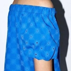 New Zara embroidered off-the-shoulder Eyelet short puff sleeve mini dress XS