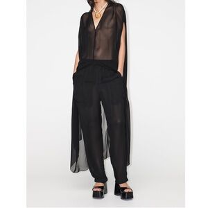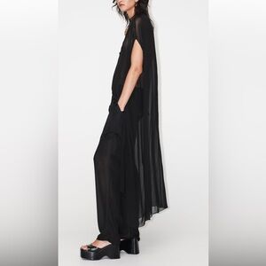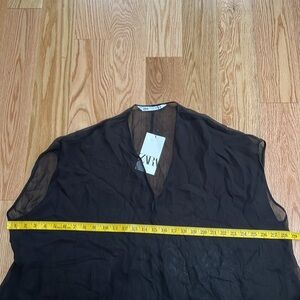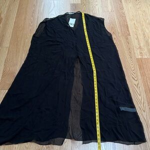 New! Zara medium black longline sheer blouse with short sleeves, V neck, front opening and asymmetrical front hem. Can be used as a cover up too.