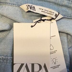 New Zara soft denim Shirt Midi Maxi belted Dress size Medium linen blend