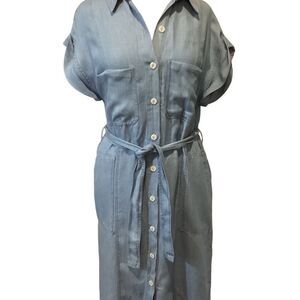 New with tags soft denim collared button up midi maxi belted dress. Rolled sleeves. Front and side pockets. Can wear completely opened, unbuttoned too