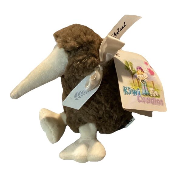 This 6" plush Kiwi and Friends plush is a cute and soft sitting souvenir from New Zealand. The brown color and bird theme make it a charming addition to any occasion, suitable for children aged 3 and above. Made by Kiwi & Friends, this plush toy represents the beloved bird of New Zealand and is a perfect gift for bird lovers and enthusiasts.