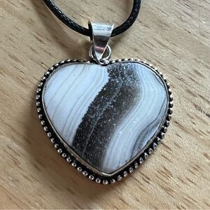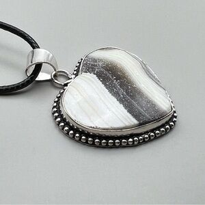 New Zebra Calcite Stone Heart Shaped Silver Overlay Pendant Necklace w Cord