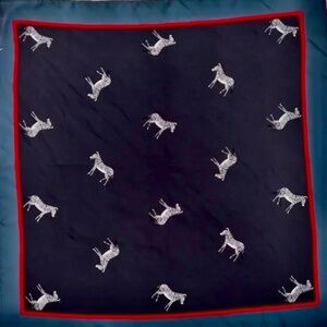 This lovely zebra square scarf can be worn as a scarf, tied up in your hair or added to your favourite bag as the perfect accessory. The lightweight design makes it excellent for spring and summer. The pattern features a range of zebras dotted around on a navy charcoal background with a contrasting pink and slate blue border.