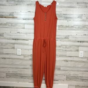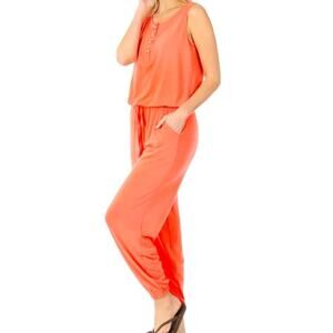 New Zenana Coral Orange Stretchy Jumpsuit Jogger Ankle Sleeveless Size 3X