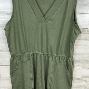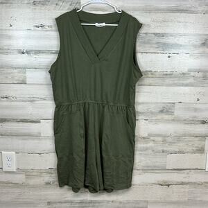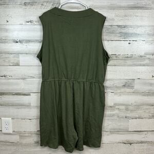 New Zenana Cotton Sleeveless V Neck Romper with Pockets Army Green Size 3X