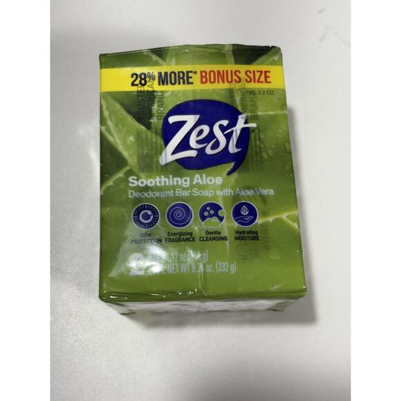 New Zest Soothing Aloe, Deodorant Bar Soap With Aloe Vera, 2x Bars 4.12oz Each.