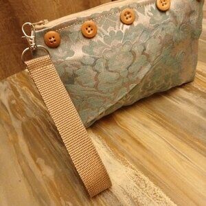 New Zippy Hanging Satin Wristlet Clutch Pouch Make-up Bags Button detail Florals