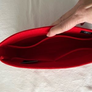 Brand new and never used. Only taken out for photos. Red felt organizer for Louis Vuitton Favorite MM. One large slip pocket on one side and two smaller slip pockets on other.