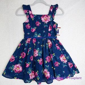 New! Zunie Girl Cotton Floral fit and flare Knee-Length Dress Navy Multi, size M, size 7-8.