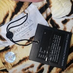 Brand new with tag. Pompeii silk cigarette capri pants in tiger animal print by acacia swimwear. Medium. Features an oversized shell button, front side pockets, highwater pant above ankle fit, an elasticized back waist, and cuffed hem. 95% silk 5% spandex. No trade please. The price is firm & reflects high % posh fee, rarity, way above retail peixe I originally paid for it, etc