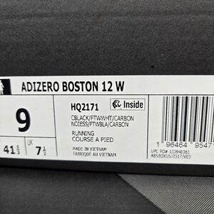 New adidas Adizero Boston 12 Core Black Cloud White Women's Running Shoes Size 9