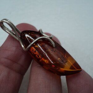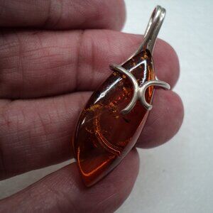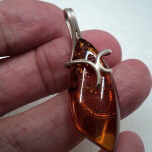 New artisan crafted Amber sterling silver pendant 1.64" POS134
