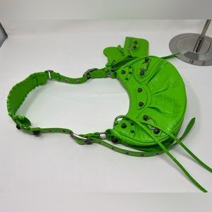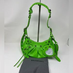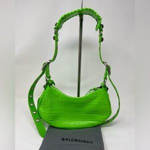 New authentic Balenciaga Le Cagole XS studded neon croc-effect leather bag