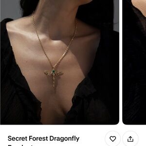 Elegant dragonfly pendant by awe inspired , featuring a stunning gold finish with a vibrant green accent. Perfect for adding a touch of nature-inspired beauty to any outfit. Does not come with chain.. New never worn. Comes with awe pouch.